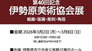 今年も伊勢原美術協会展が中央公民館で開催中です。今回は40回記念展にて大作が多く出品され見応えのある展覧会になりました。昨日は市長始多くの方々にお祝い頂きました。3月8日(日)までです。是非,ご来場を...